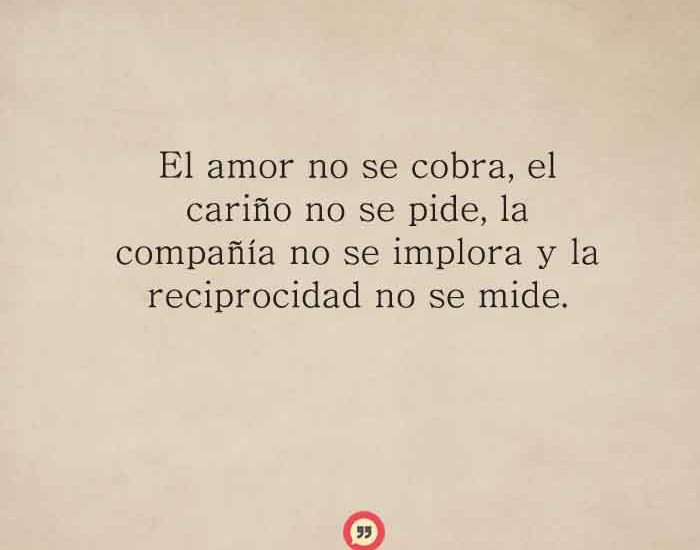 El amor no se cobra, el cariño no se pide, la compañía no se implora y la reciprocidad no se mide.