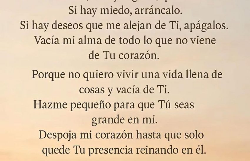 Señor, que no me aparte nunca de Tus enseñanzas, ni de Tus caminos y que pueda encontrarte, si en algún momento llego a perderme.