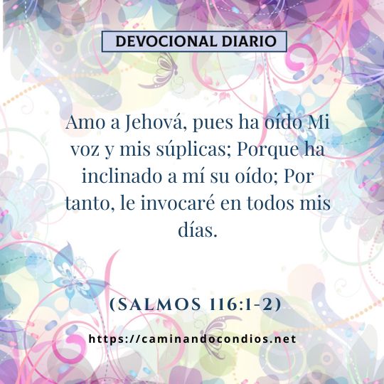 Amo a Jehová, pues ha oído Mi voz y mis súplicas; Porque ha inclinado a mí su oído; Por tanto, le invocaré en todos mis días. (Salmos 116:1-2)