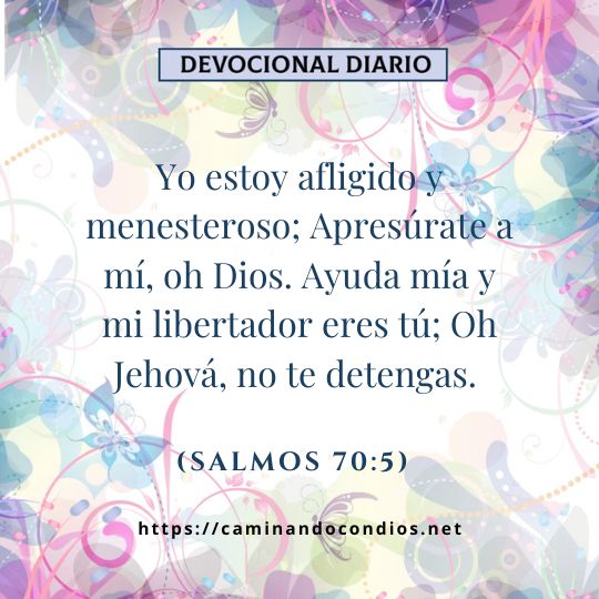 Yo estoy afligido y menesteroso; Apresúrate a mí, oh Dios. Ayuda mía y mi libertador eres tú; Oh Jehová, no te detengas. (Salmos 70:5)