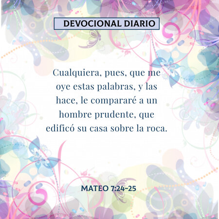 Señor, ayúdame a ser como el hombre prudente que edifico su casa sobre la roca, edificando ahora mi vida sobre el cimiento sólido y firme de las enseñanzas de Tu Santa Palabra, de forma que, a través de ella pueda hallar el camino a la transformación que esperas en mi conforme a Tu grandiosa voluntad, y pueda seguir alabándote, obedeciéndote y siguiéndote con fidelidad. Amén.