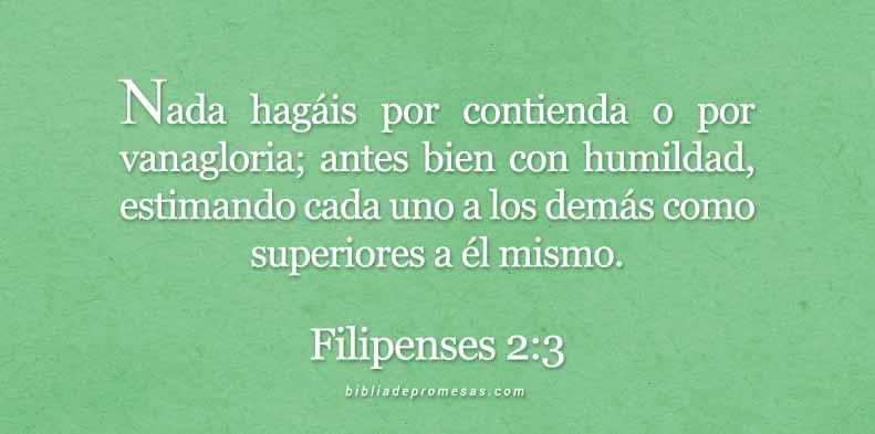 Nada hagáis por contienda o por vanagloria; antes bien con humildad, estimando cada uno a los demás como superiores a él mismo. (Filipenses 2:3)