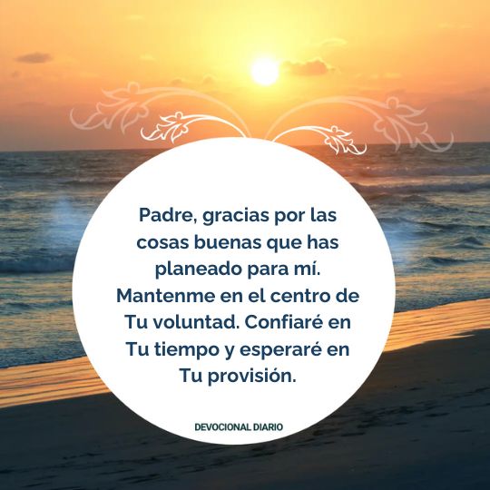Padre, gracias por las cosas buenas que has planeado para mí. Mantenme en el centro de Tu voluntad. Confiaré en Tu tiempo y esperaré en Tu provisión. En El Nombre de Jesús, Amén.
