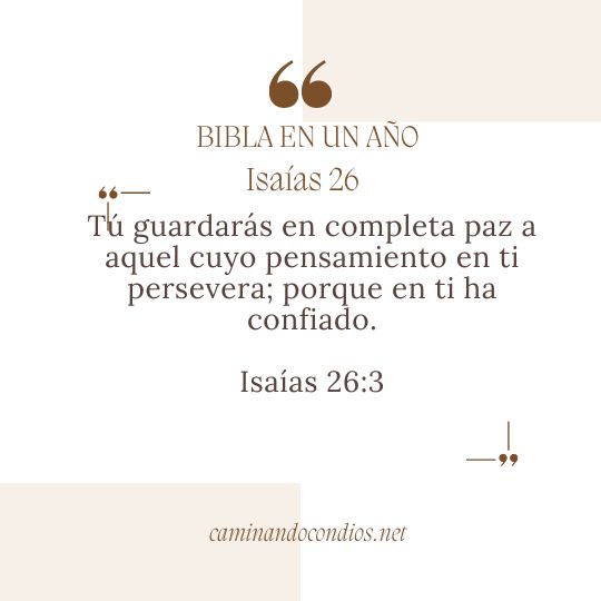 Isaías 26 está lleno de versículos que ofrecen consuelo, esperanza y una profunda confianza en Dios. Uno de los versículos más inspiradores y conocidos de este capítulo es Isaías 26:3, que dice: