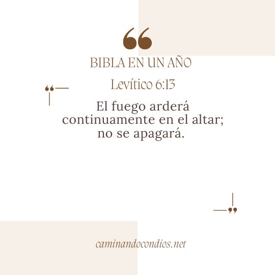 En este capítulo, Dios instruye a Moisés sobre las responsabilidades de los sacerdotes y las leyes referentes a las ofrendas. Uno de los mandatos más significativos es que el fuego del altar debía mantenerse encendido continuamente. Este fuego representaba la presencia de Dios y la adoración constante del pueblo. No podía apagarse, porque simbolizaba la comunión ininterrumpida entre el Señor y su pueblo.