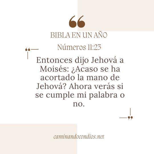 Entonces dijo Jehová a Moisés: ¿Acaso se ha acortado la mano de Jehová? Ahora verás si se cumple mi palabra o no. Números 11:23