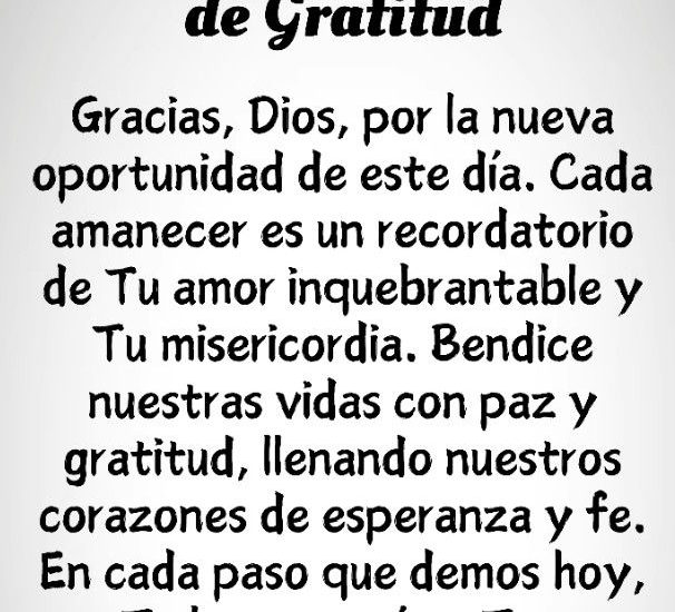 Gracias, Dios, por la nueva oportunidad de este día. Cada amanecer es un recordatorio de Tu amor inquebrantable y Tu misericordia. Bendice nuestras vidas con paz y gratitud, llenando nuestros corazones de esperanza y fe.