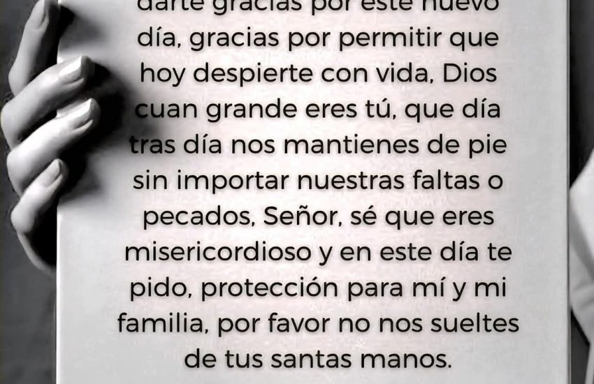 Señor, permítenos despertar cada día llenos de fuerza, vitalidad y entusiasmo para poder luchar por nuestros objetivos, no asientas que nos perdamos en las penumbras de la desesperación y la desesperanza y siempre cúbrenos con tu maravilloso manto de protección.