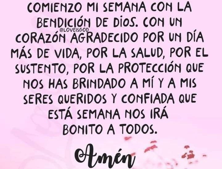 Señor, permítenos despertar cada día llenos de fuerza, vitalidad y entusiasmo para poder luchar por nuestros objetivos, no asientas que nos perdamos en las penumbras de la desesperación y la desesperanza y siempre cúbrenos con tu maravilloso manto de protección.