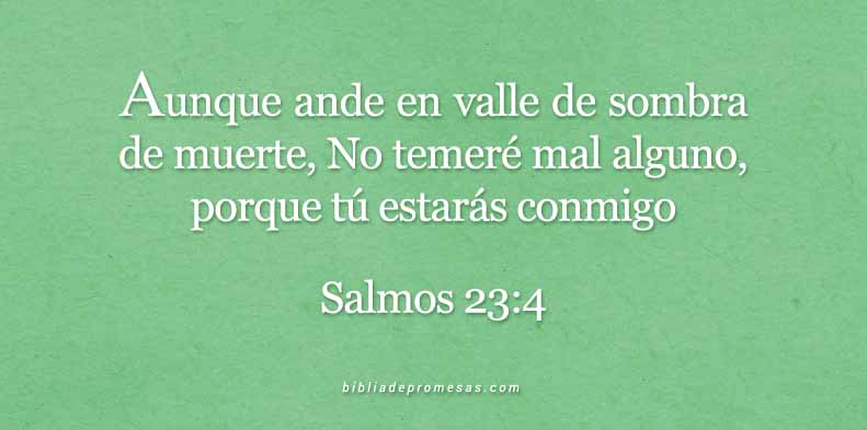 Aunque ande en valle de sombra de muerte, No temeré mal alguno, porque tú estarás conmigo; Tu vara y tu cayado me infundirán aliento. (Salmos 23:4)