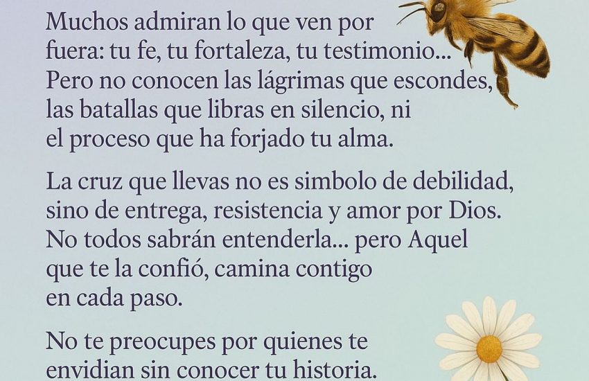 Pero no conocen las lágrimas que escondes, las batallas que libras en silencio, ni el proceso que ha forjado tu alma.