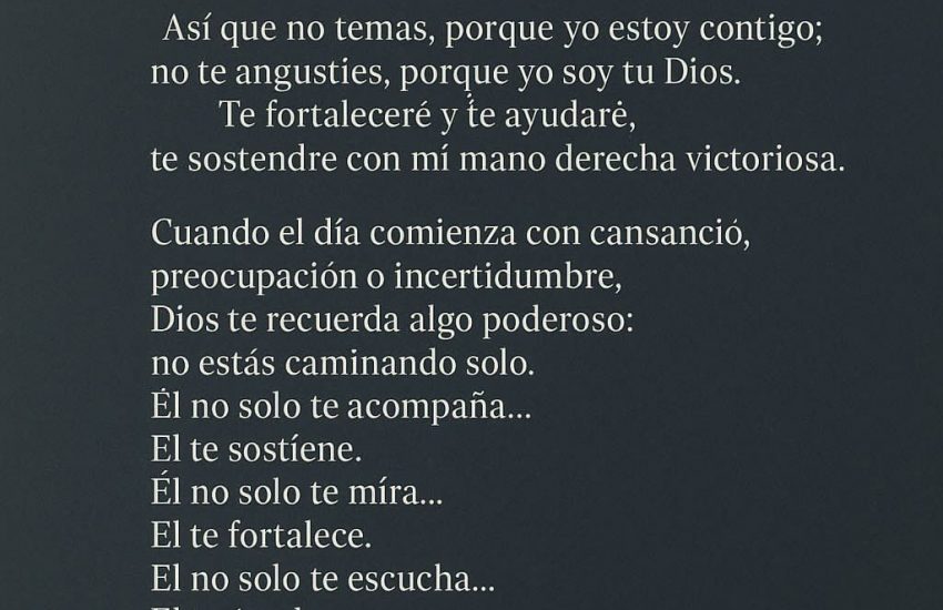 No necesitas cargar hoy con lo que no puedes resolver. No tienes que temer lo que aún no entiendes. Dios ya está delante de ti, abriendo camino, dando fuerza y poniendo paz donde antes había ansiedad.