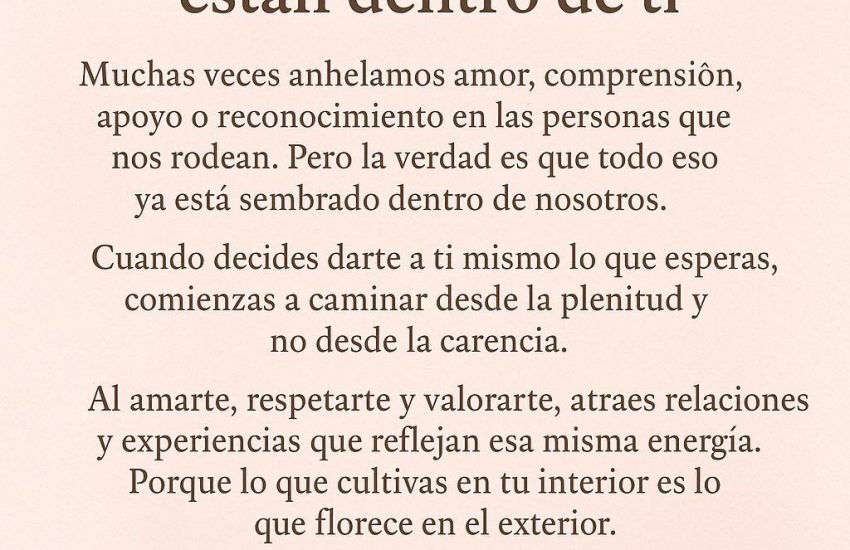 Cuando decides darte a ti mismo lo que esperas, comienzas a caminar desde la plenitud y no desde la carencia.