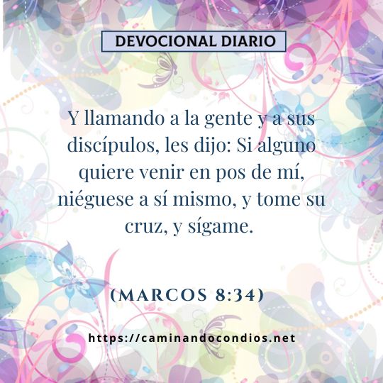 Y llamando a la gente y a sus discípulos, les dijo: Si alguno quiere venir en pos de mí, niéguese a sí mismo, y tome su cruz, y sígame. (Marcos 8:34)