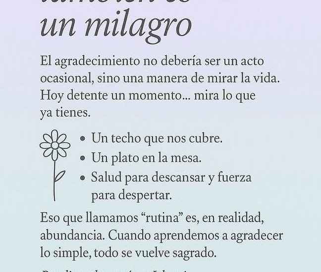 Eso que llamamos “rutina” es, en realidad, abundancia. Cuando aprendemos a agradecer lo simple, todo se vuelve sagrado.