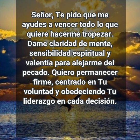 Te pido que me ayudes a vencer todo lo que quiere hacerme tropezar. Dame claridad de mente, sensibilidad espiritual y valentía para alejarme del pecado. Quiero permanecer firme, centrado en Tu voluntad y obedeciendo Tu liderazgo en cada decisión.