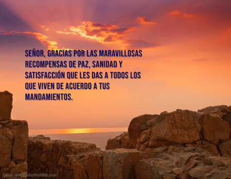 Señor, ayúdame a obedecerte siempre. Pon un barómetro santo dentro de mí para que el clima espiritual que tengo siempre armonice con tus caminos. Adviérteme cuando estoy cerca de cruzar la línea en cuanto a hacer las cosas a tu manera y no hacer lo que está mal ante tus ojos. Gracias por las maravillosas recompensas de paz, sanidad y satisfacción que les das a todos los que viven de acuerdo a tus mandamientos.