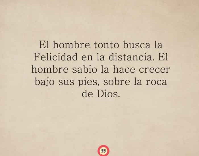 El hombre tonto busca la Felicidad en la distancia. El hombre sabio la hace crecer bajo sus pies, sobre la roca de Dios. Que estás promesas de sabiduría te iluminen el camino hacia ella y sean de bendición para tu vida.