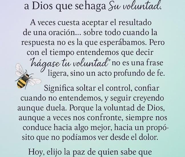 Significa soltar el control, confiar cuando no entendemos, y seguir creyendo aunque duela. Porque la voluntad de Dios, aunque a veces nos confronte, siempre nos conduce hacia algo mejor, hacia un propósito que no podíamos ver desde el dolor.