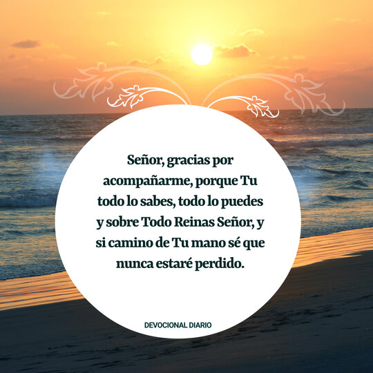 Oración diaria: Señor, aunque muchas veces no perciba la forma como estás actuando en mi vida, sé que puedo tener la seguridad de que Tus pensamientos y Tus planes son los que realmente necesito. Por eso Padre, confío en ti y seguiré confiando todos los días de mi vida, incluso cuando en mi visión limitada y falible no le encuentre sentido a lo que esté pasando. Porque Tu todo lo sabes, todo lo puedes y sobre Todo Reinas Señor, y si camino de Tu mano sé que nunca estaré perdido. Gracias Padre por estar presente y sostenerme en toda circunstancia.