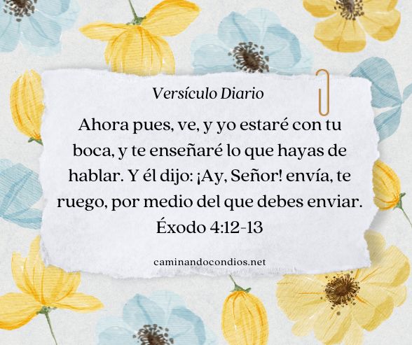 Ahora pues, ve, y yo estaré con tu boca, y te enseñaré lo que hayas de hablar. Y él dijo: ¡Ay, Señor! envía, te ruego, por medio del que debes enviar. Éxodo 4:12-13