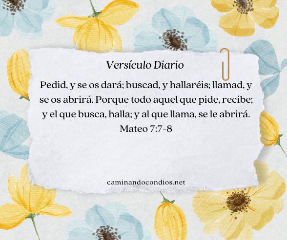 Pedid, y se os dará; buscad, y hallaréis; llamad, y se os abrirá. Porque todo aquel que pide, recibe; y el que busca, halla; y al que llama, se le abrirá. Mateo 7:7-8