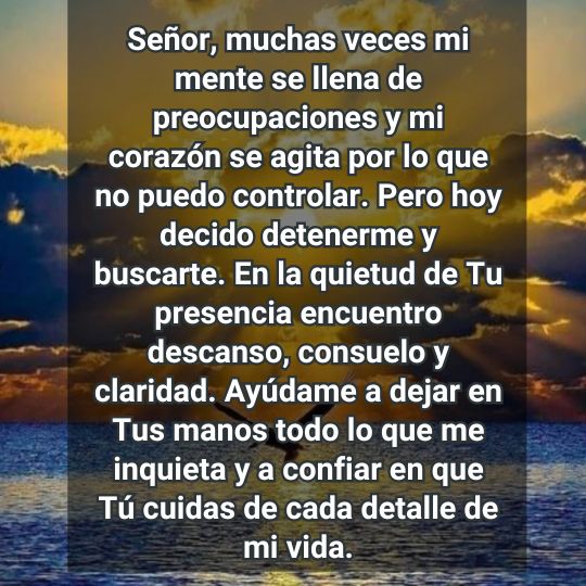 Señor, permítenos despertar cada día llenos de fuerza, vitalidad y entusiasmo para poder luchar por nuestros objetivos, no asientas que nos perdamos en las penumbras de la desesperación y la desesperanza y siempre cúbrenos con tu maravilloso manto de protección.